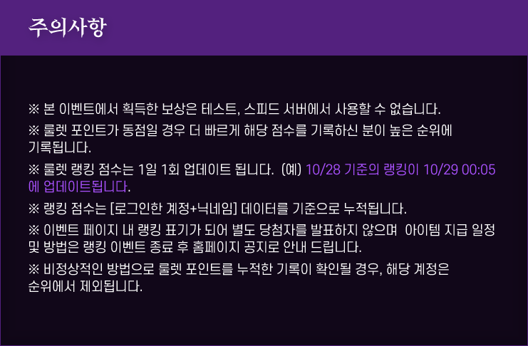 | 순위 | 닉네임 | 룰렛포인트 |