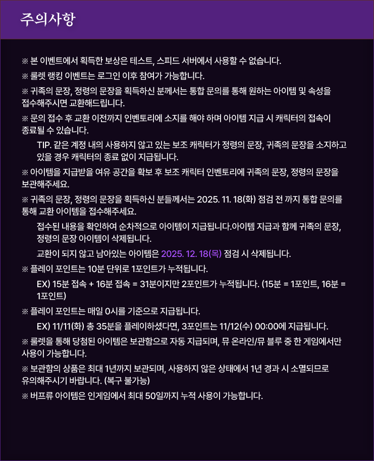 이벤트 기간 | 2025. 10. 28(화) 점검 이후 ~ 2025. 11. 17(수) 24:00